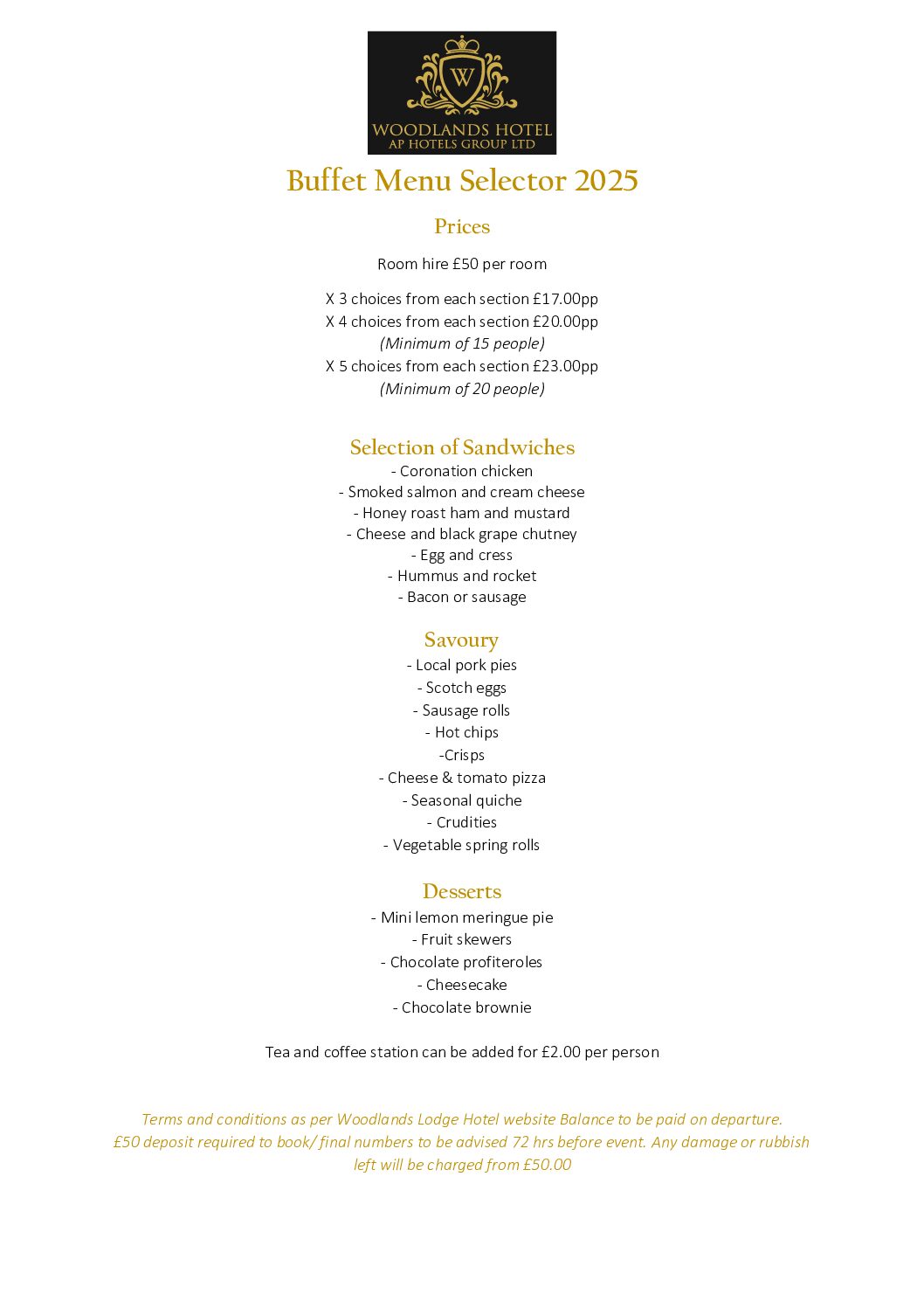 Lunch can be added £15 for 2 course – Soup / Sandwich / cake – menu tbc