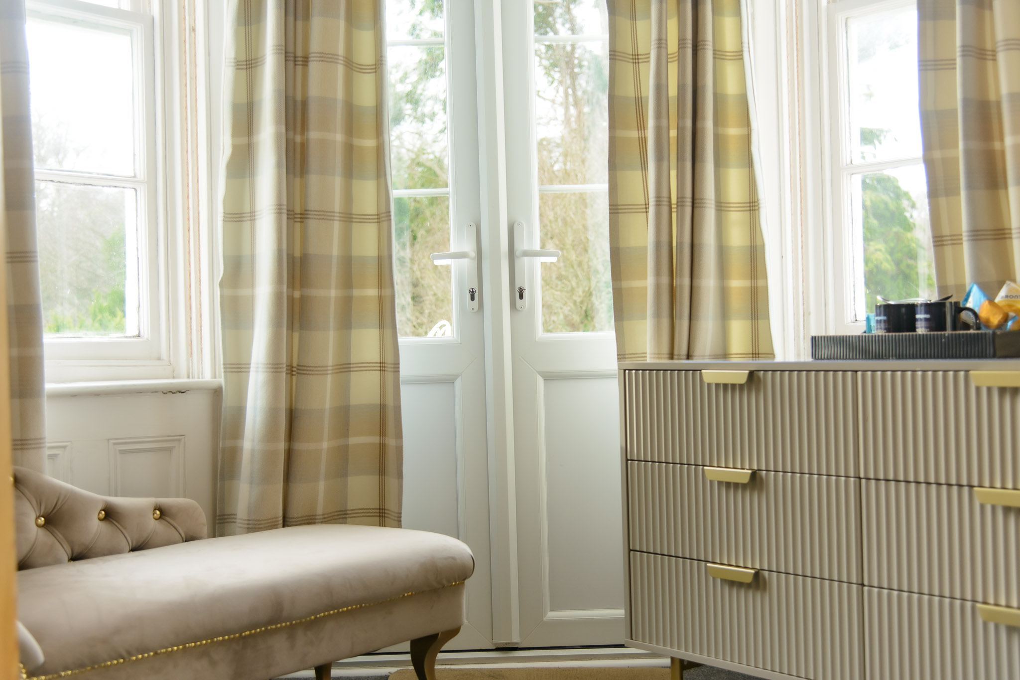 While our Junior suite boasts a stunning private conservatory with access into the communal hotel gardens. This room is also our easy access room.